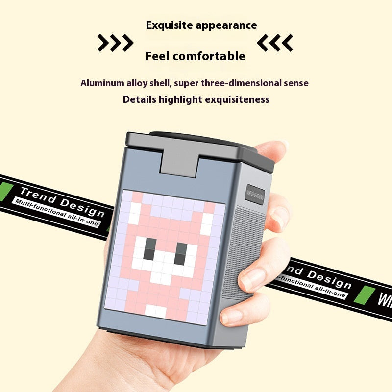Upgrade your living space with the PixelSound 3-in-1 Wireless Charging Station - a wellness-focused gadget designed to simplify your daily routine. Keep your devices charged without clutter while enjoying soothing background music from the integrated Bluetooth speaker. The pixel display doubles as a smart bedside clock, giving you quick access to time, alarms, or ambient pixel animations to help you relax, focus, or sleep better. Its compact design and multifunctionality make it perfect for modern bedrooms, offices, or creative spaces, enhancing your lifestyle while staying organized and efficient.